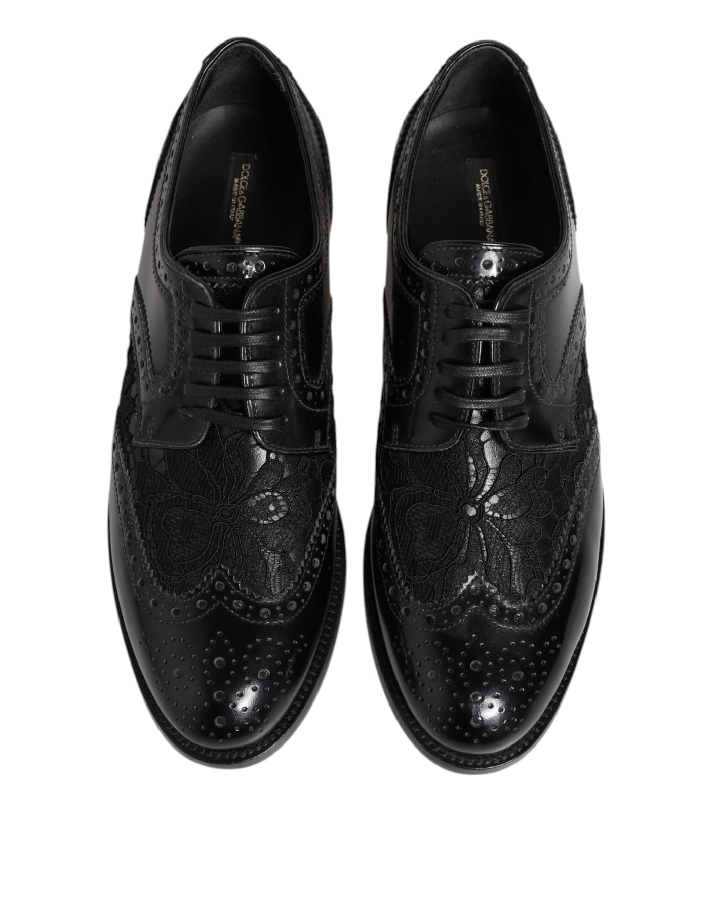 Gorgeous, brand new with tags 100% Authentic Dolce & Gabbana derby shoes feature a classic lace-up closure. Crafted from luxurious black leather with elegant floral lace detailing, these shoes offer a refined and feminine silhouette perfect for formal occasions or elevating any stylish outfit. Designed with Italian craftsmanship, they combine timeless sophistication with Dolce & Gabbana’s signature flair.