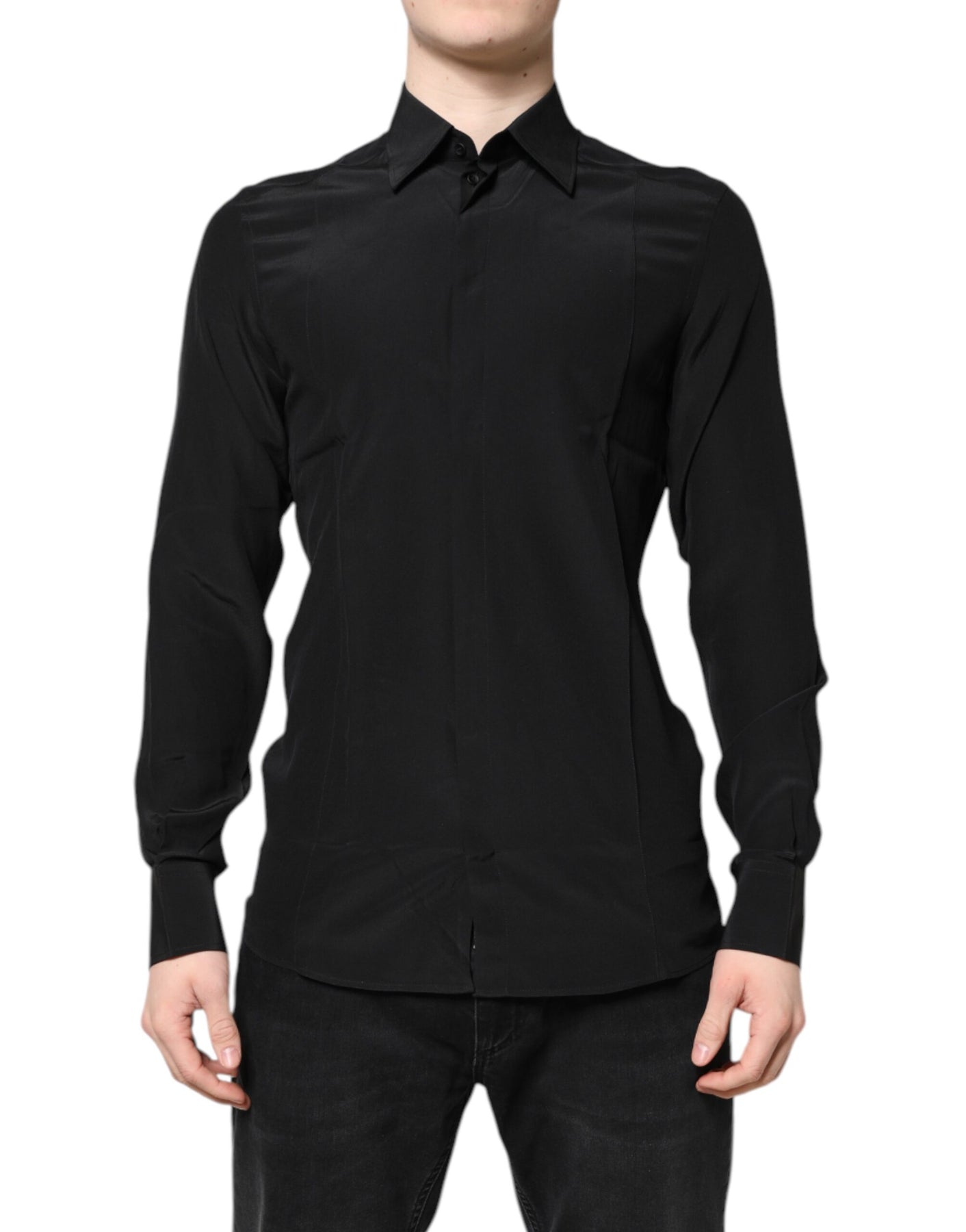Gorgeous brand new with tags 100% Authentic DOLCE & GABBANA GOLD silk dress shirt. The model has a classic neck, long sleeves and a button down closure.