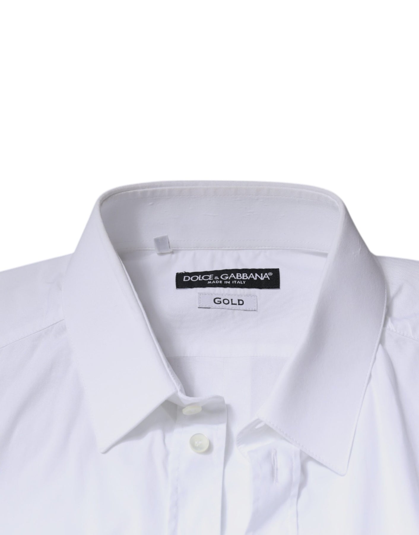 Absolutely stunning, 100% Authentic, preowned Dolce & Gabbana GOLD cotton blend shirt. The model has a classic collared neck, long sleeves and a button down closure.