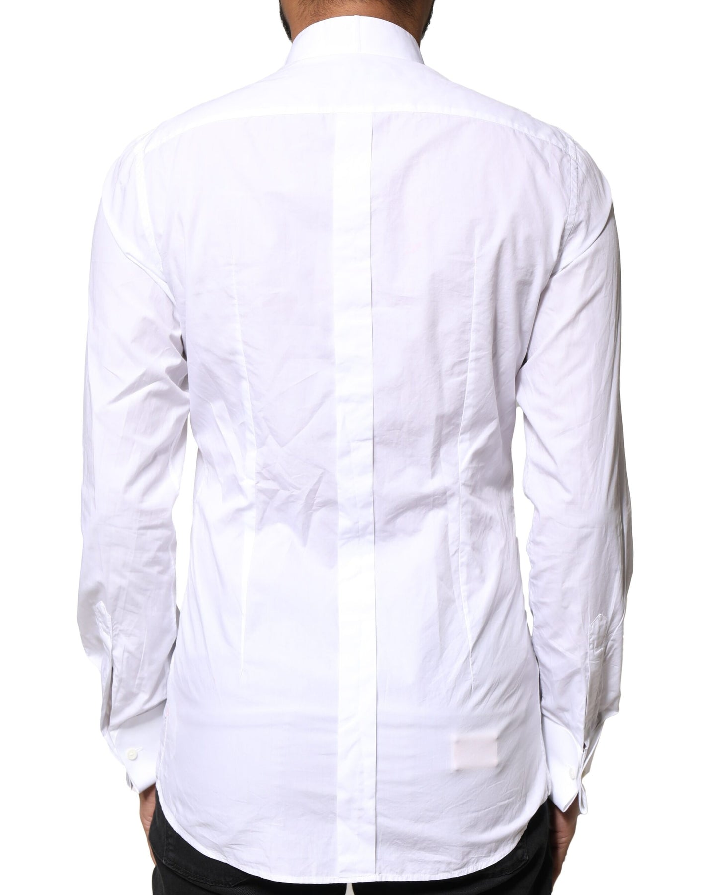 Absolutely stunning, 100% Authentic brand new Dolce & Gabbana white cotton poplin shirt featuring a bib. The model has a classic collared neck, long sleeves and a button down closure.