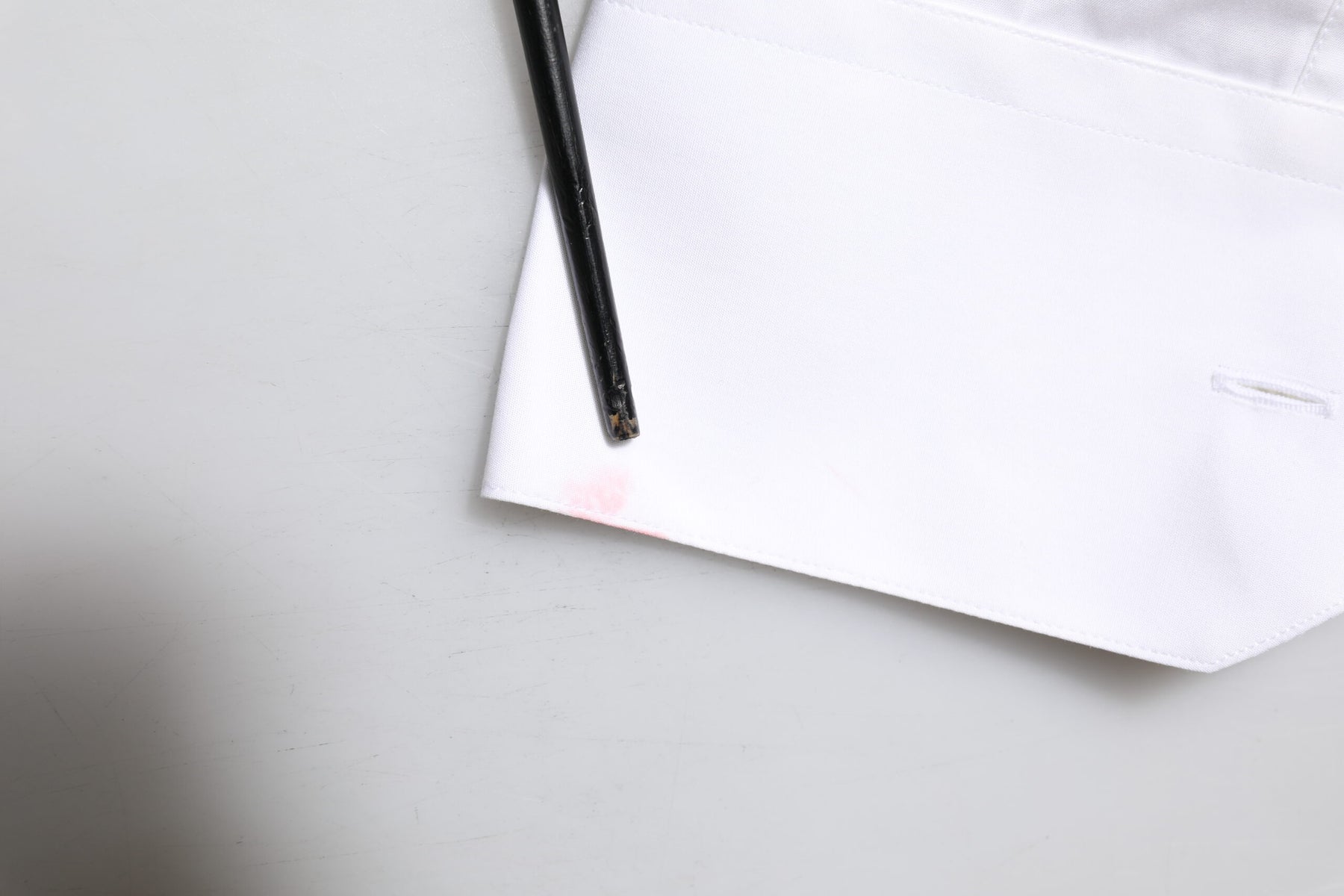 This item is a store sample, there are make up stains on the collar and left sleeve (see pictures for details).