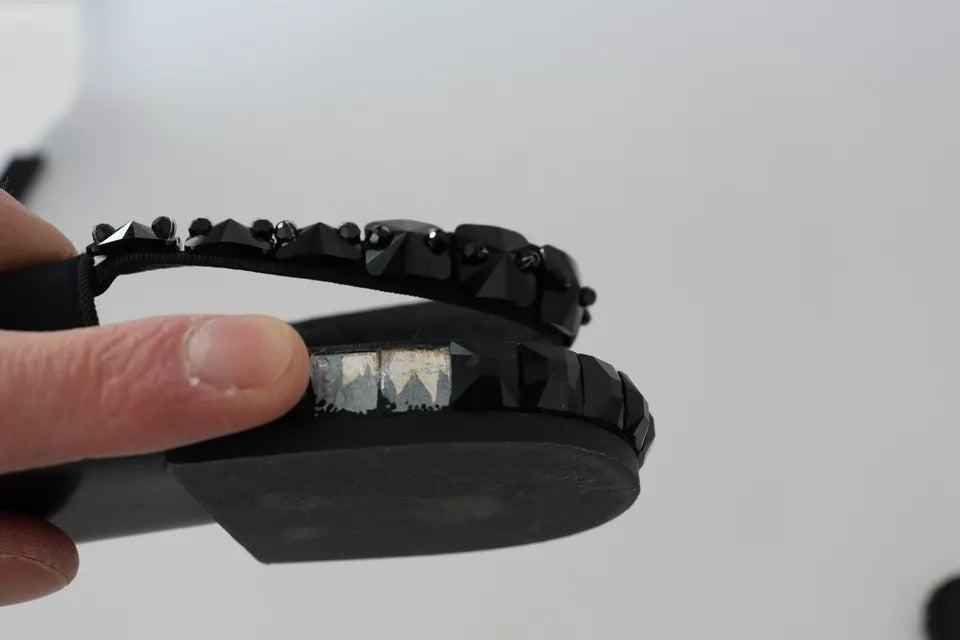 Gorgeous preowned with tags, 100% Authentic Dolce & Gabbana Charmeuse slingback flats featuring studs at ankle strap and heel.