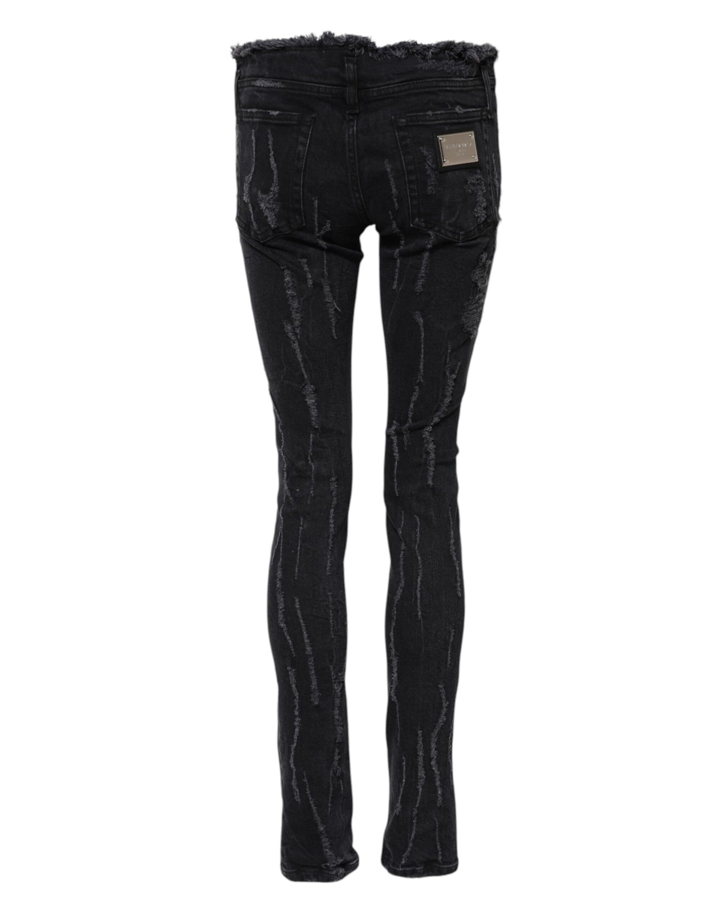 Gorgeous brand new, 100% Authentic Dolce & Gabbana skinny mid waist tattered denim jeans with DG logo plaque.