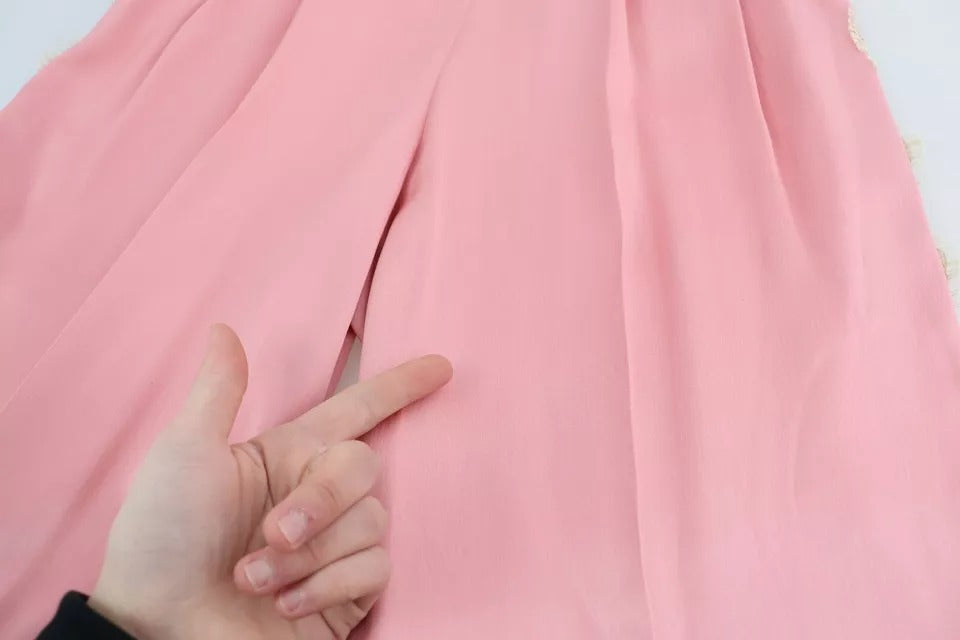 Pink Lace Trimmed Silk Satin Wide Legs Pants