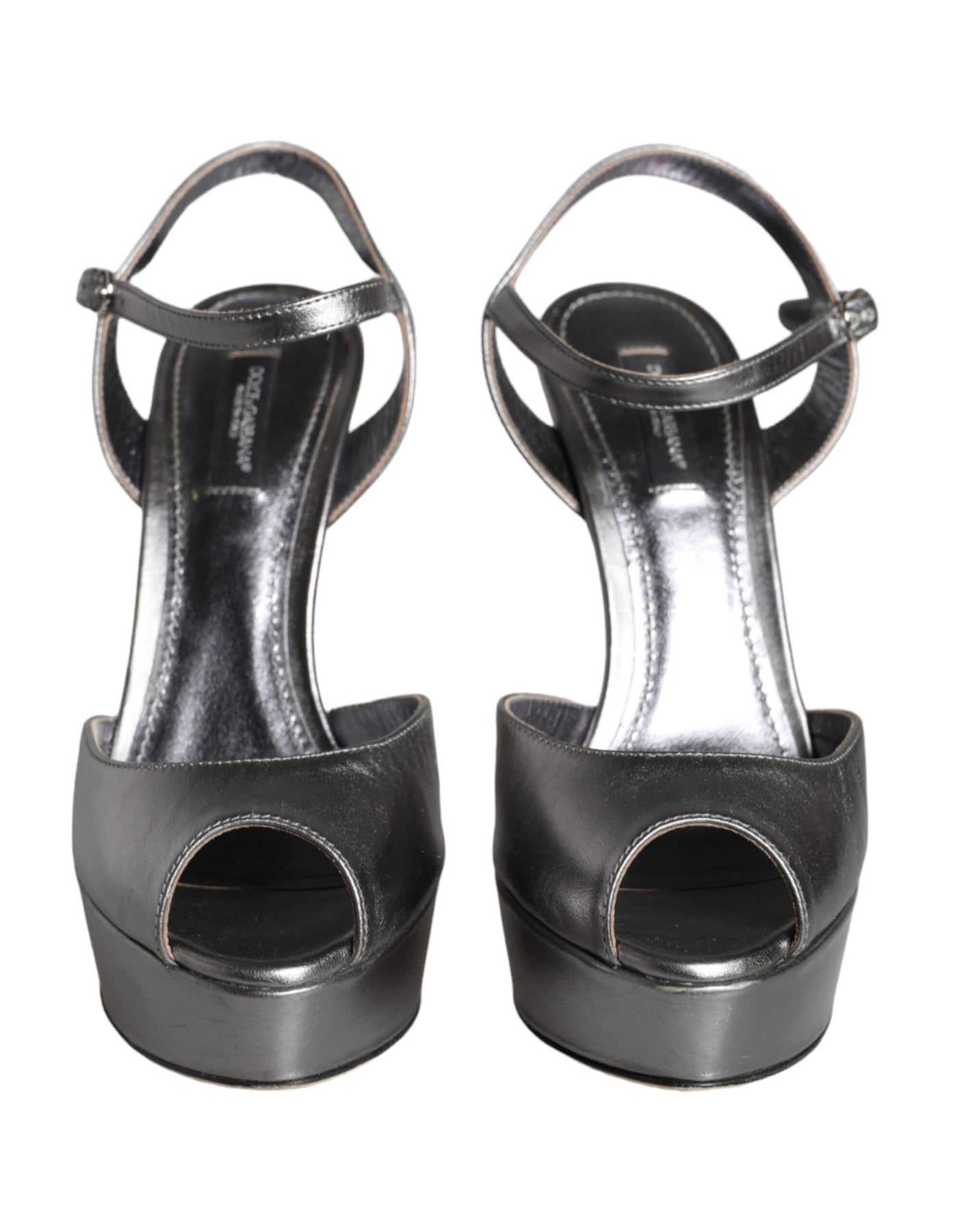 Metallic Silver Leather Keira Platform Sandals Shoes