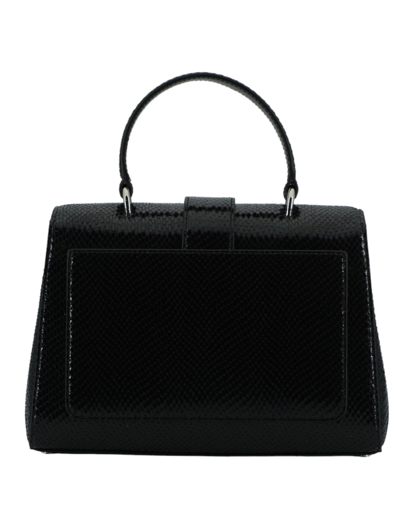 Details: Handbag realised in calf leather. With removable leather shoulder strap and magnetic button closure under the flap. With Cristal detailed hardware. Three main compartments and internal zip pocket.
