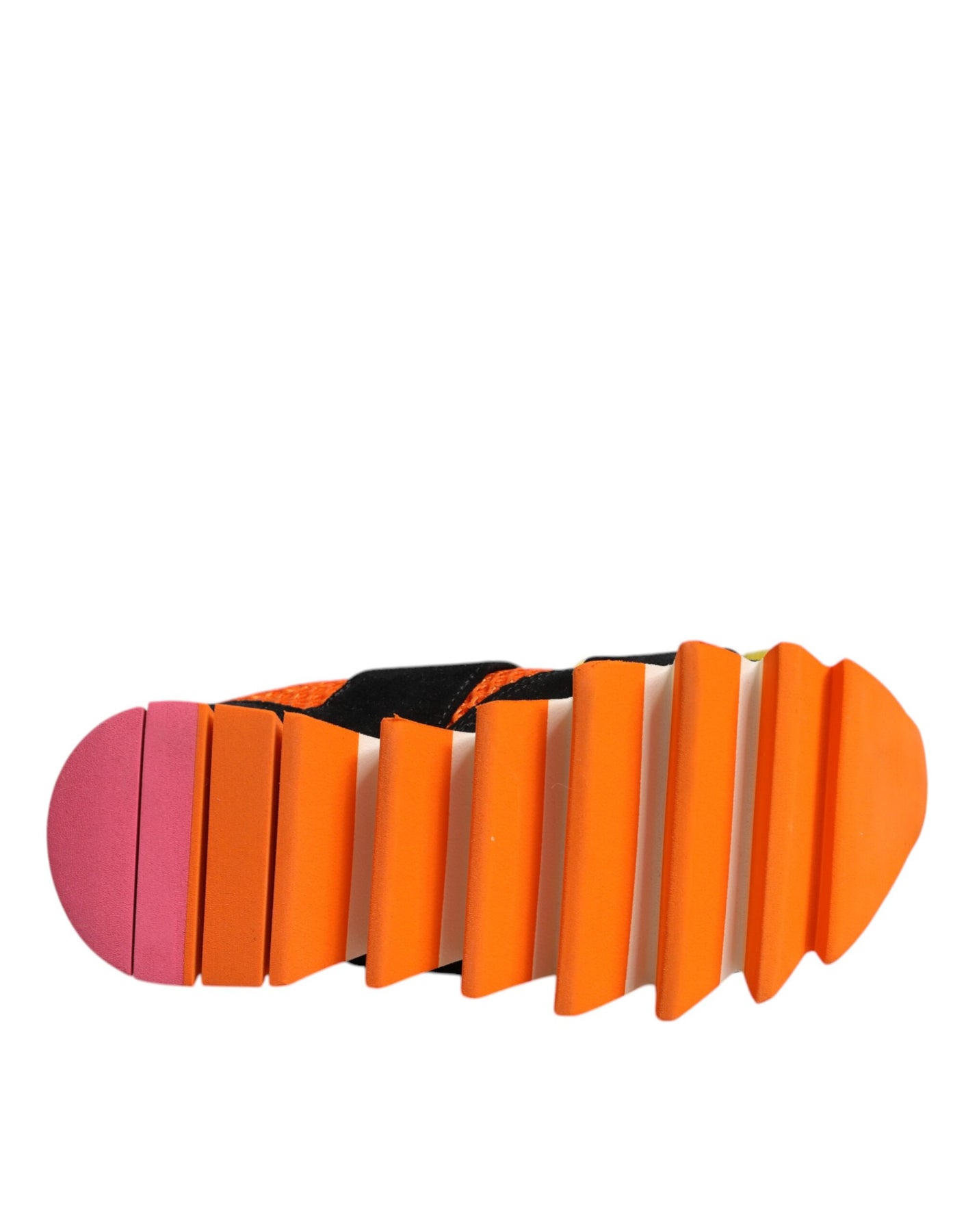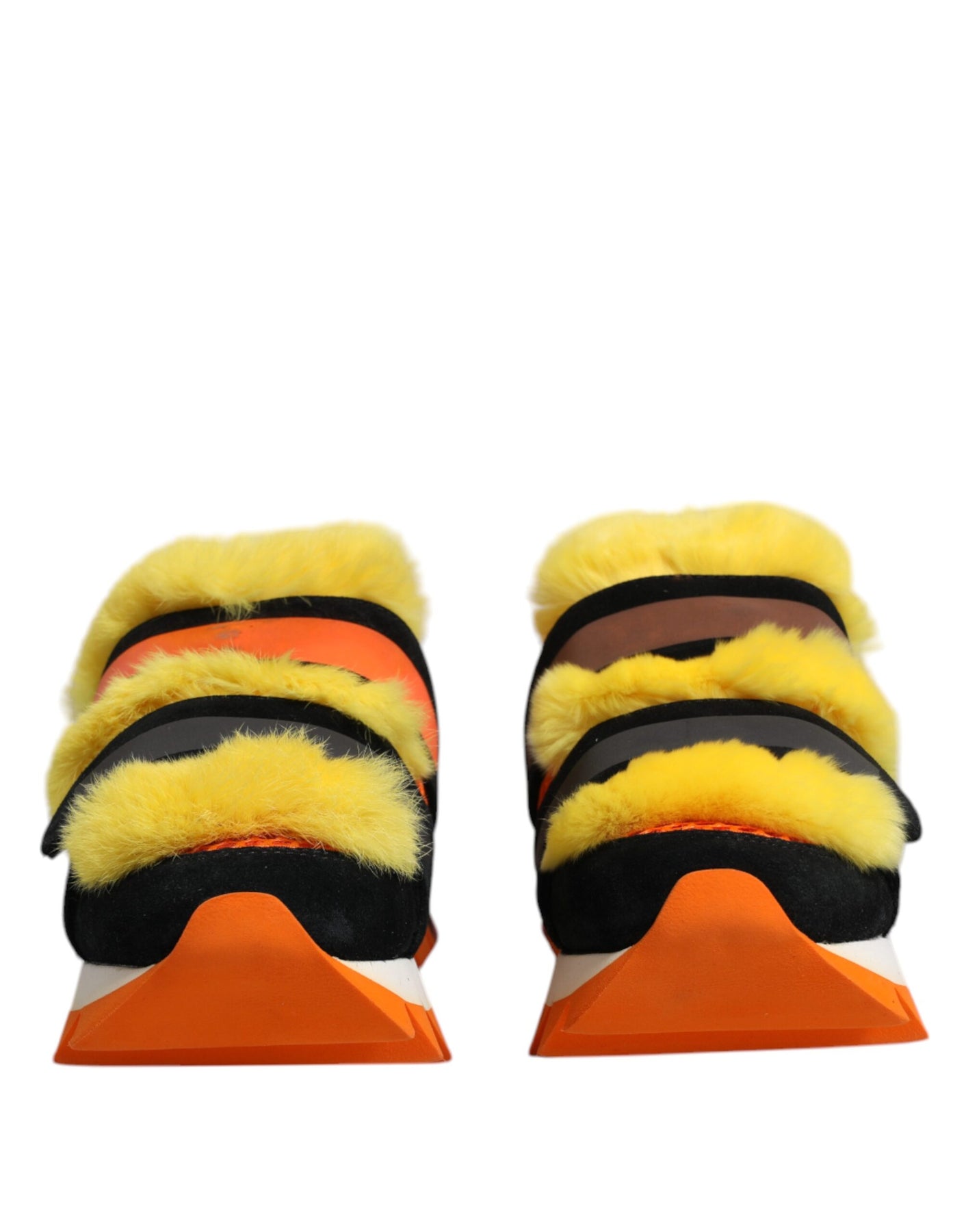 Gorgeous brand new, 100% Authentic Dolce & Gabbana fur-embellished suede & mesh multicolor platform sneakers.