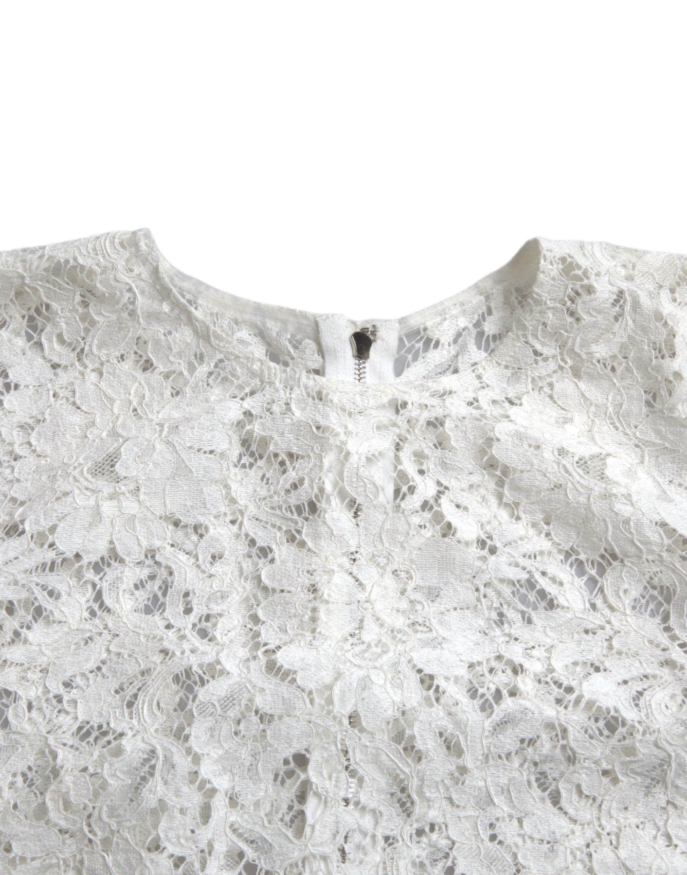 Gorgeous brand new with tags, 100% Authentic Dolce & Gabbana blouse. A thin translucent material is responsible for the first, and a floral motif and a delicate shade of white are responsible for the second. Domenico Dolce and Stefano Gabbana chose openwork cord lace, which Italian craftswomen weave from soft cotton.
