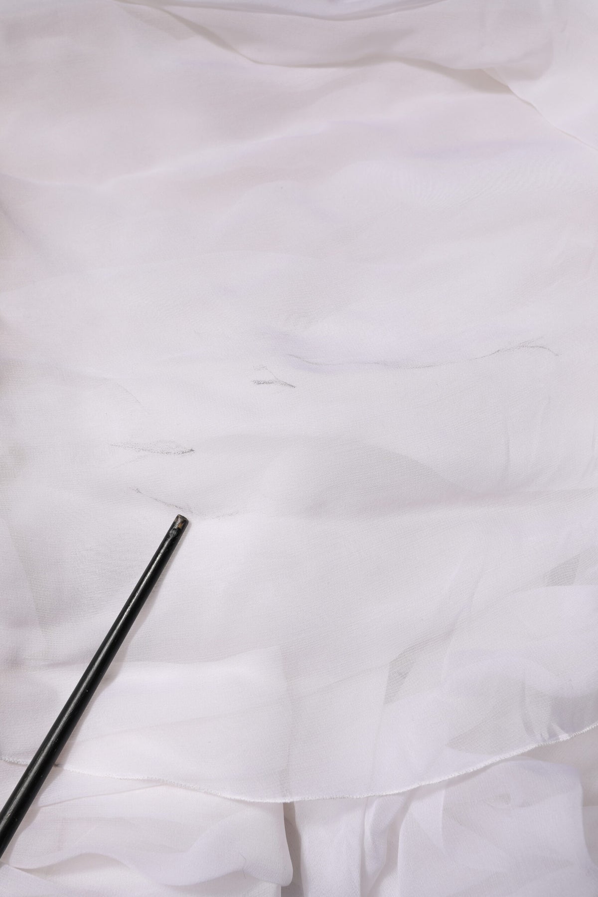 This item has a minor defect, there are stains and pulled threads on the cape (see pictures for details).