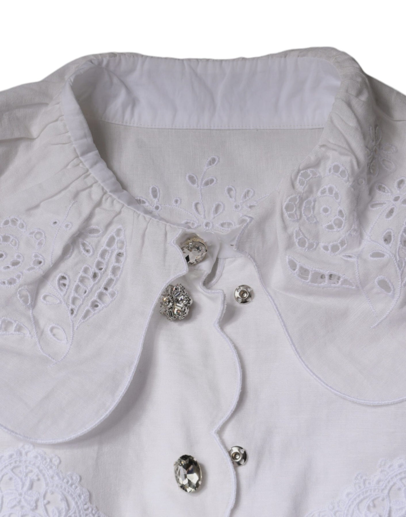 Gorgeous, 100% Authentic Dolce & Gabbana white collared long sleeves blouse top with lace trim.