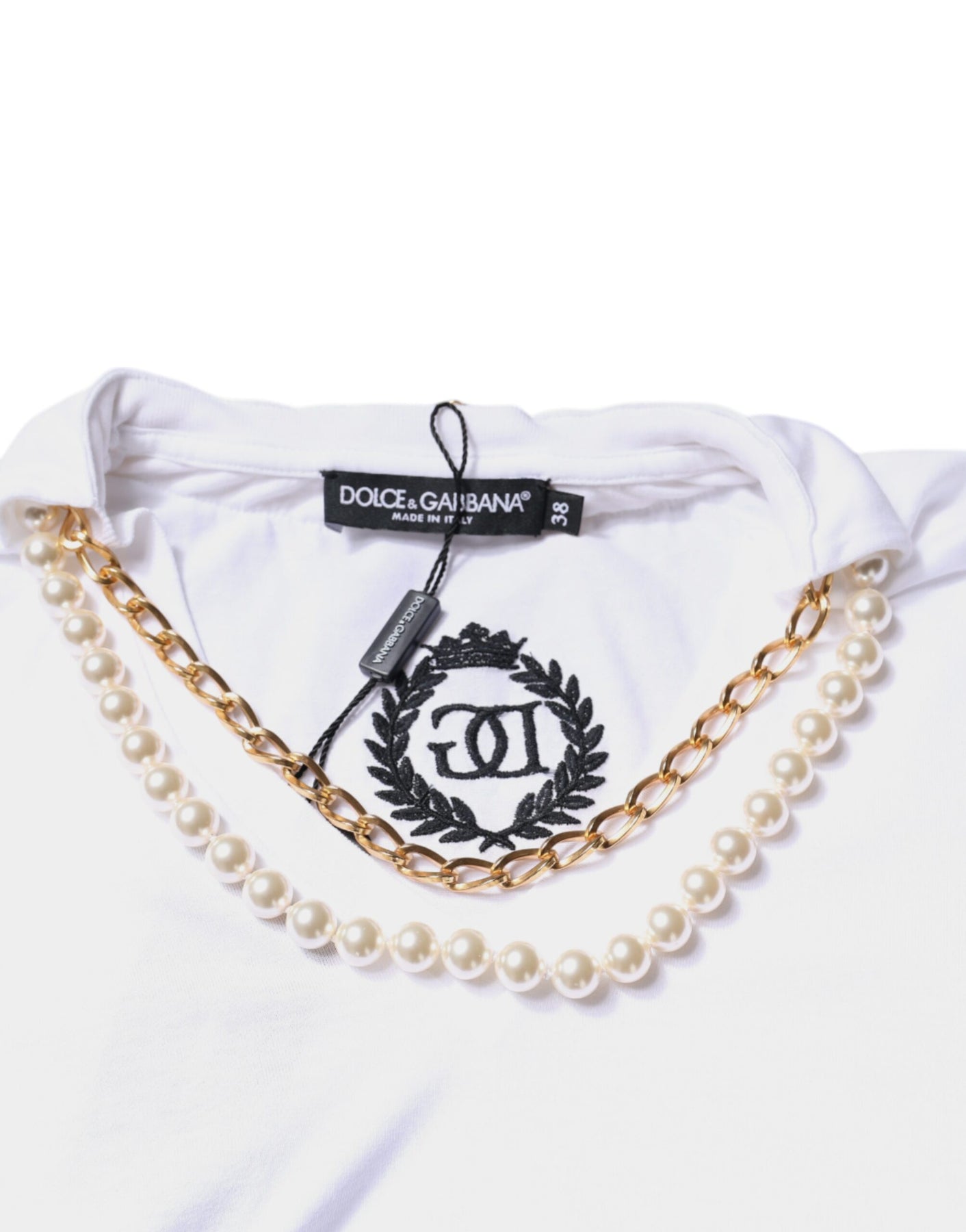 Gorgeous brand new with tags, 100% Authentic Dolce & Gabbana collared short sleeves t-shirt with necklace chain. Crafted from cotton.