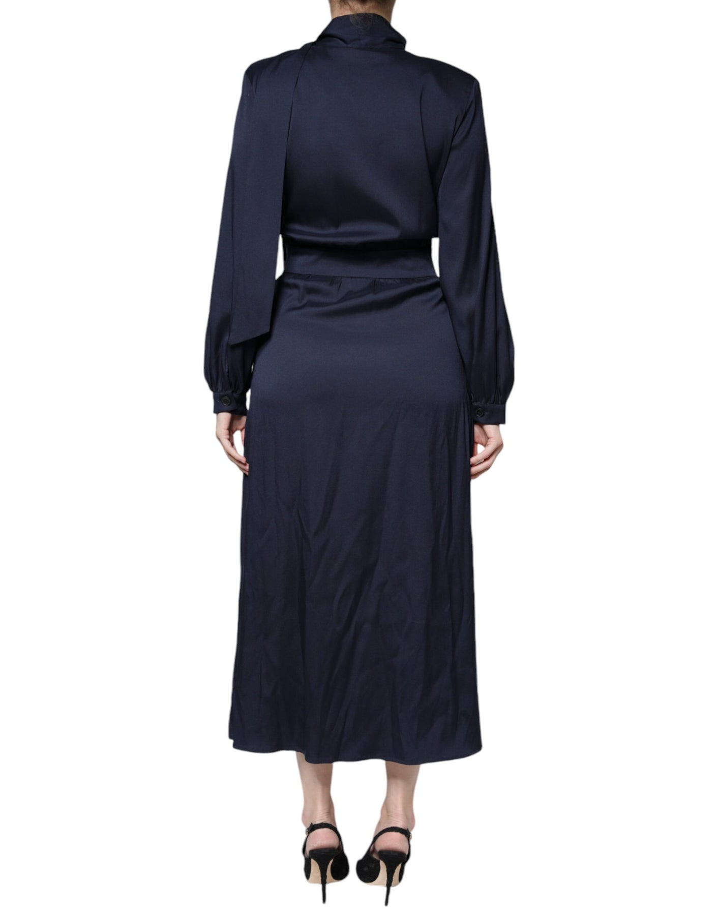 Dark Blue Long Sleeves Pleated A-line Maxi Dress