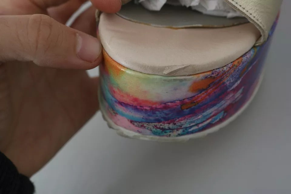 Gorgeous preowned, 100% Authentic EBARRITO shoes women’s. Features an elasticized slingback heel that provides a perfect fit. An open feel and a sturdy wedge design combined with colorful pattern that will make a solid choice for all of your outfits this Spring and Summer.